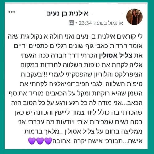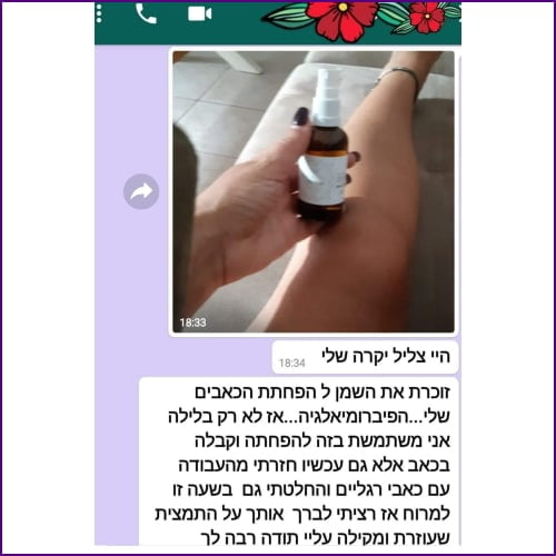"מורחת את המשחה על כאבים בברכיים ובקרסוליים, בכל מקום שיש לי כאבים - עובד מצויין!" בת שבע נ."