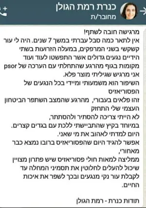 ""ממליץ לא לחשוב פעמיים! יש פתרון מעולה לפסוריאזיס" שחר א."