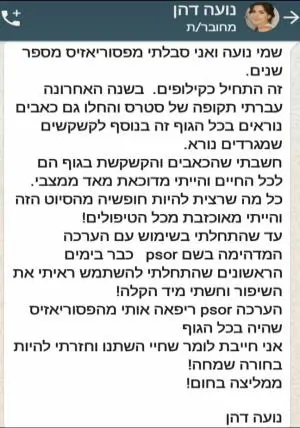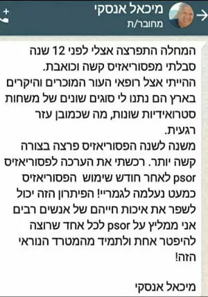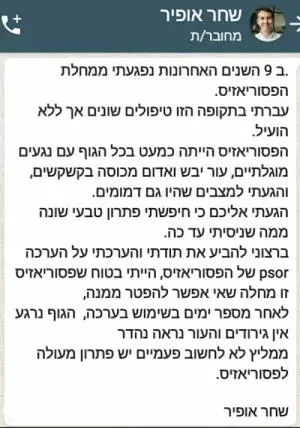 ""ממליץ לא לחשוב פעמיים! יש פתרון מעולה לפסוריאזיס" שחר א."