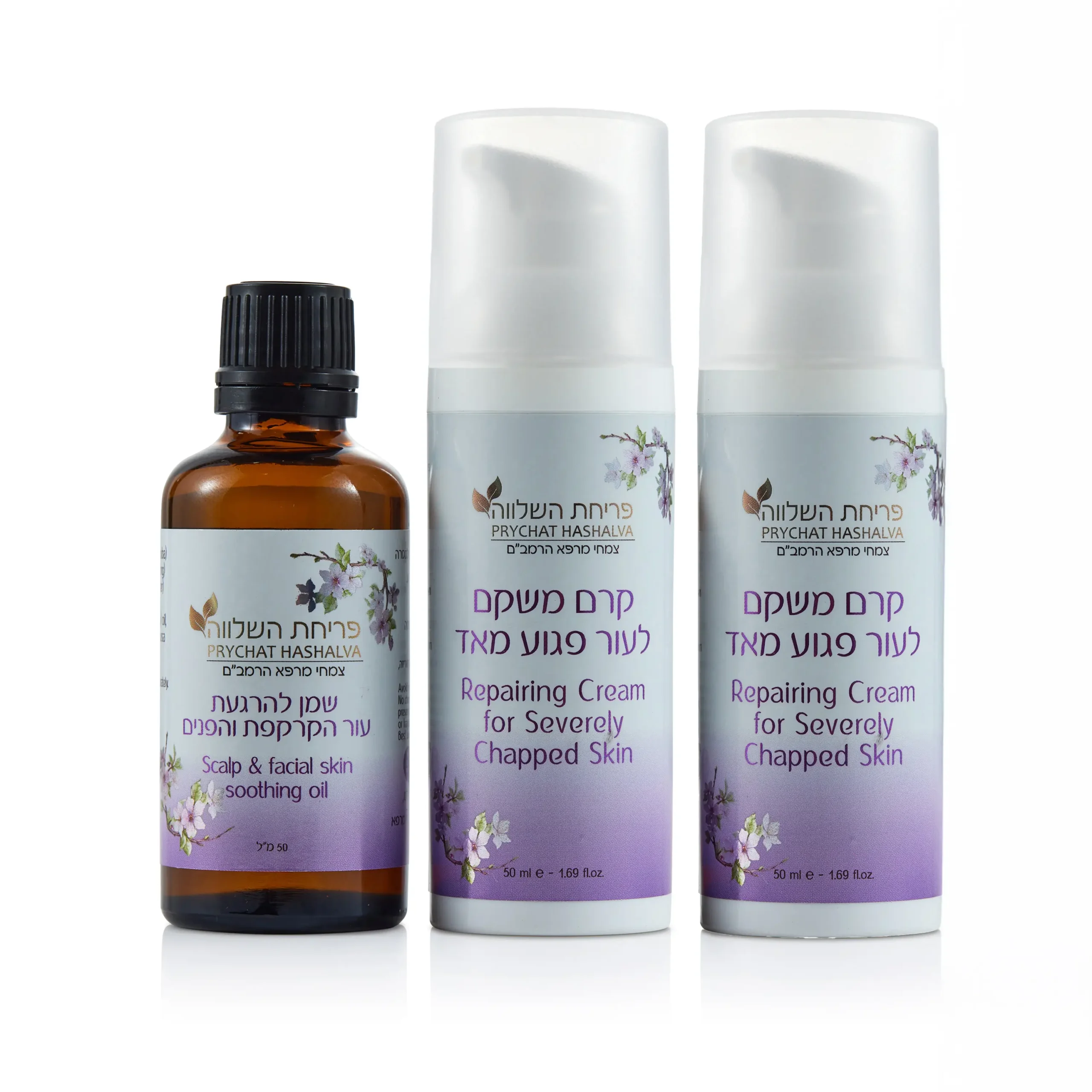 קרם ושמן לעור מגורה ולפנים – מיועד להרגעה של אזורי עור עם אדמומיות, קילופים או תחושת אי־נוחות, בעיקר בפנים, בצידי האף, בגבות ובאוזניים. מסייע בשמירה על מראה עור מאוזן ונעים לאורך זמן.