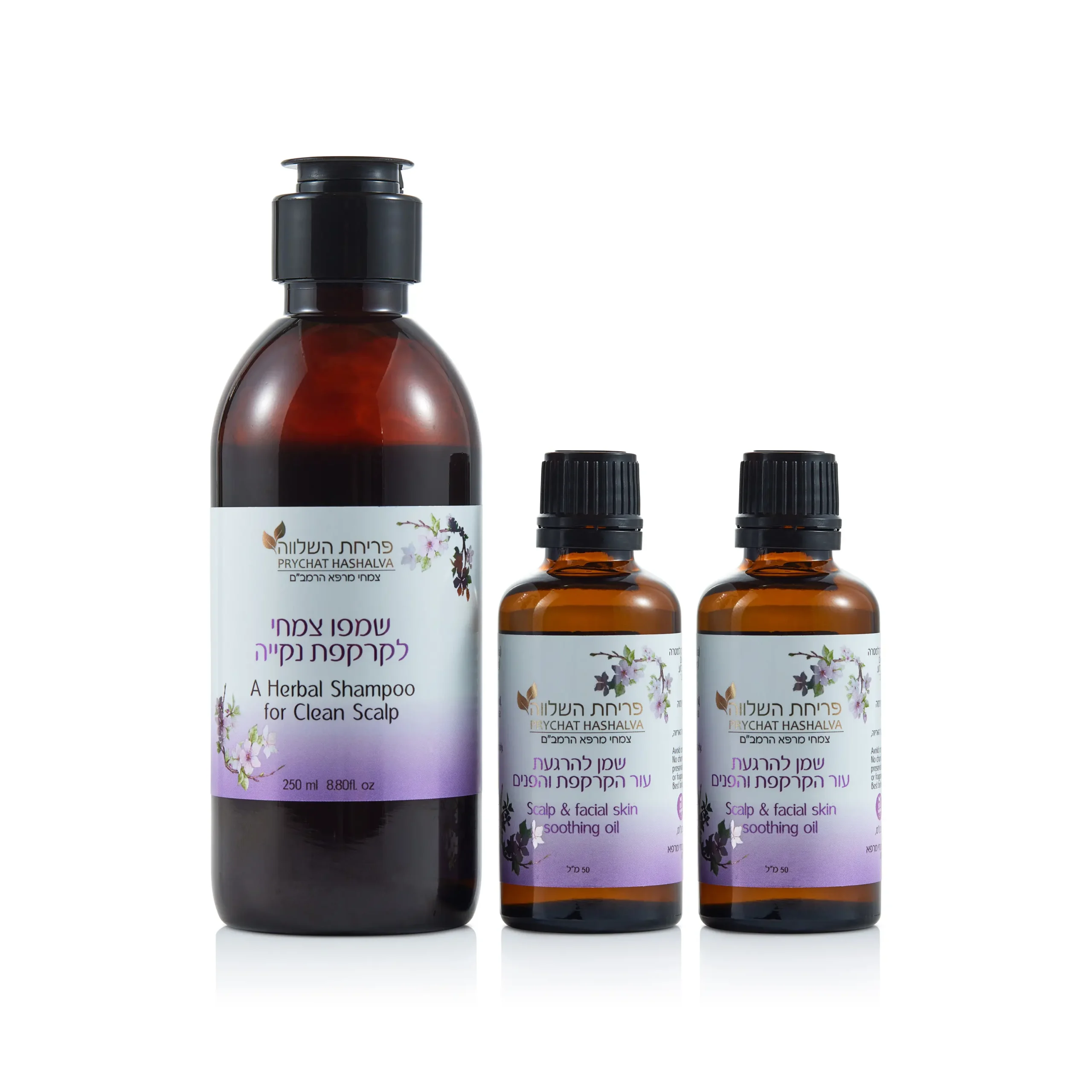 שמן ושמפו לקרקפת – מסייע בהפחתת תחושת הגירוי ובטיפוח הקרקפת. מתאים לעור מגורה, יבש או מתקלף, ותורם למראה שיער בריא ומטופח.