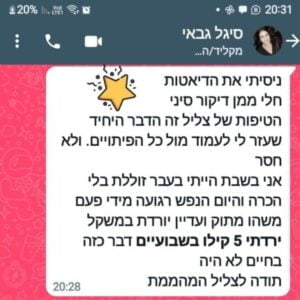 "ממש עזר לי להוריד את כל המתוקים והמלוחים שבא לי לנשנש במהלך היום. ממליצה מאוד!" רוזי כ."