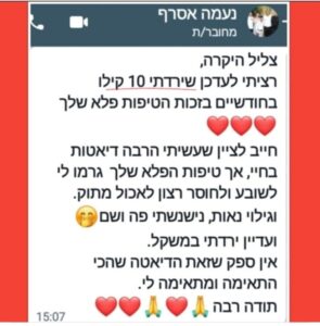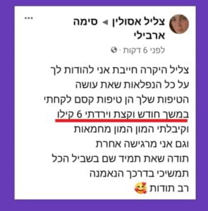 אני מרוצה והכי חשוב מצליחה! 6 קילו פחות!! ממליצה בחום לכל מי שצריך דחיפה קטנה ואפקטיבית.