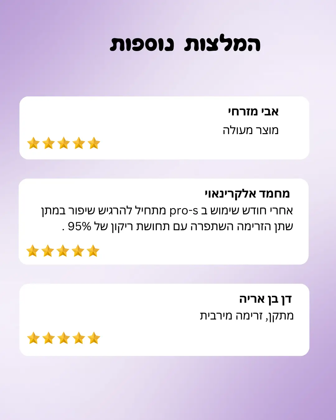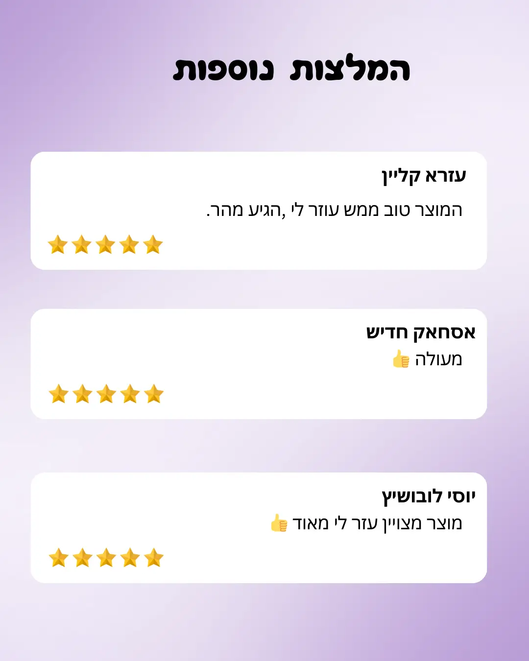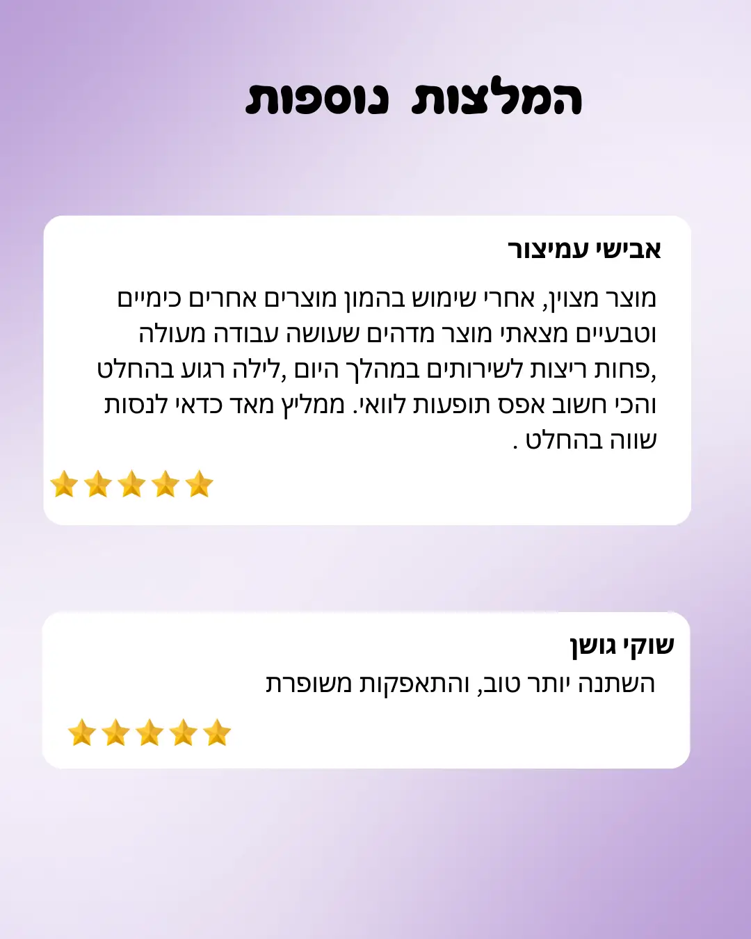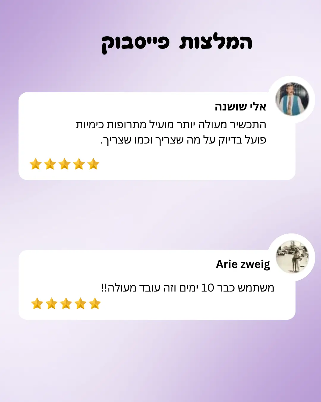 אלפי לקוחות מרוצים כבר נהנים מהמוצרים שלנו ומשתפים בחוויות והמלצות חמות על התוצאות המדהימות.