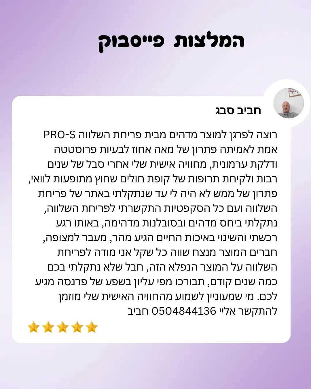 אני אסיר תודה לצוות של פריחת השלווה שהצילו את חיי אחרי 5 שנים של סבל עם בעיה קשה של הפרוסטטה ממליץ בחום רב