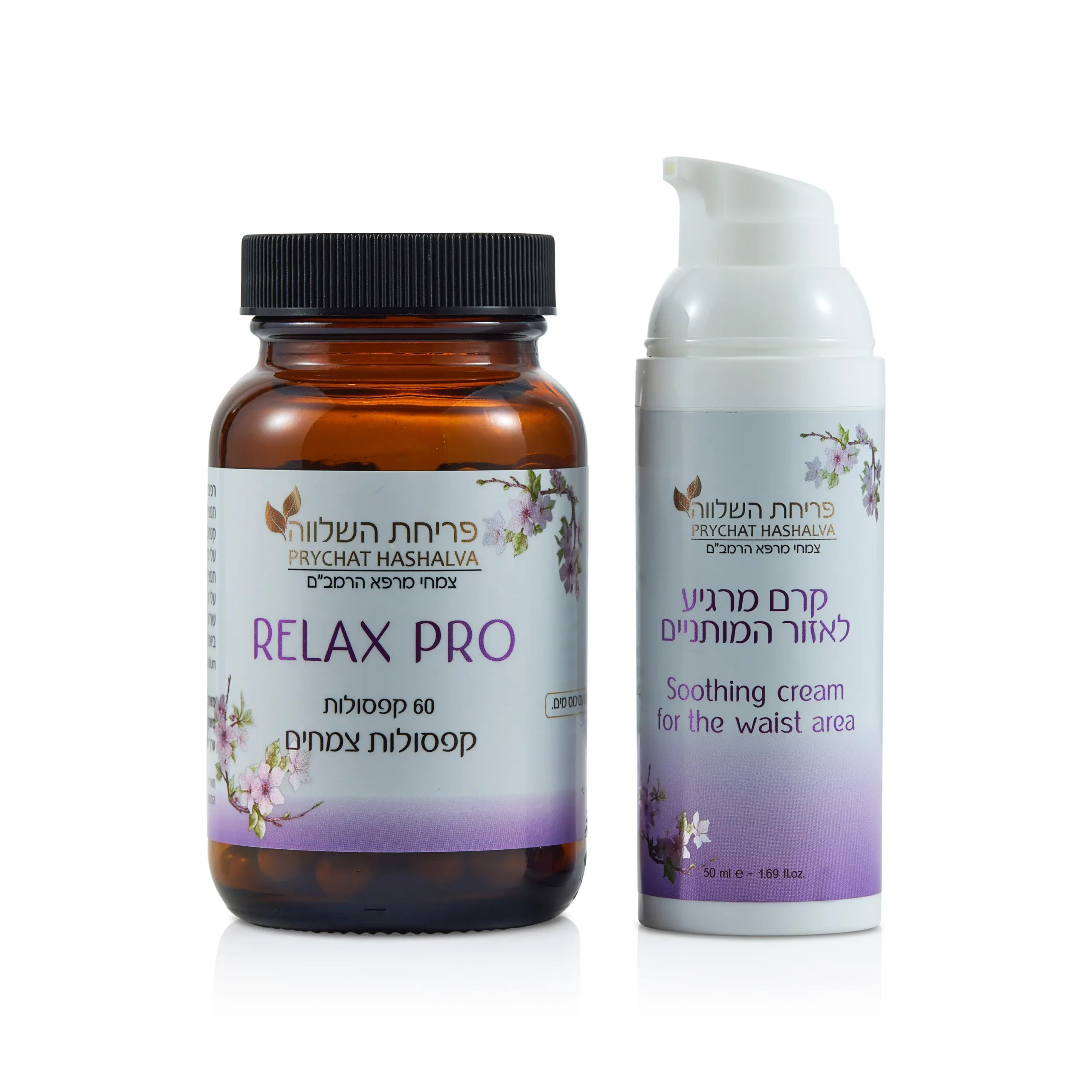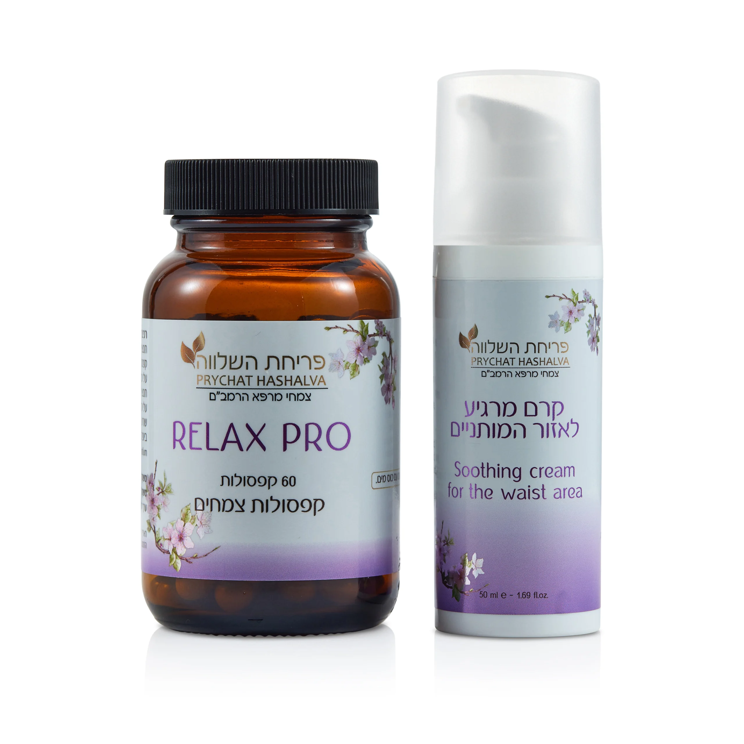 ערכה להקלה בפריחה כואבת- קרם המכיל תמציות צמחים מרגיעים כגון לבנדר, רוזמרין, הליקריזום וגרניום, לצד קפסולה טבעית נוספת, המסייעים להרגעת תחושת צריבה, גירוי וכאב בעור רגיש או מגורה.
